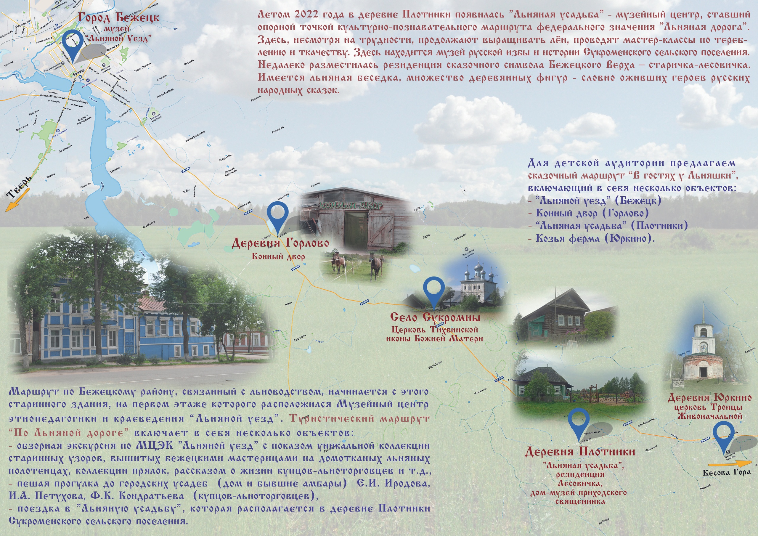 Возможна организация православных маршрутов: церковь Тихвинской иконы Божьей Матери (Сукромны), Музей приходского священника (Плотники), церковь Троицы Живоначальной (Юркино), храм Благовещения (Белое село).