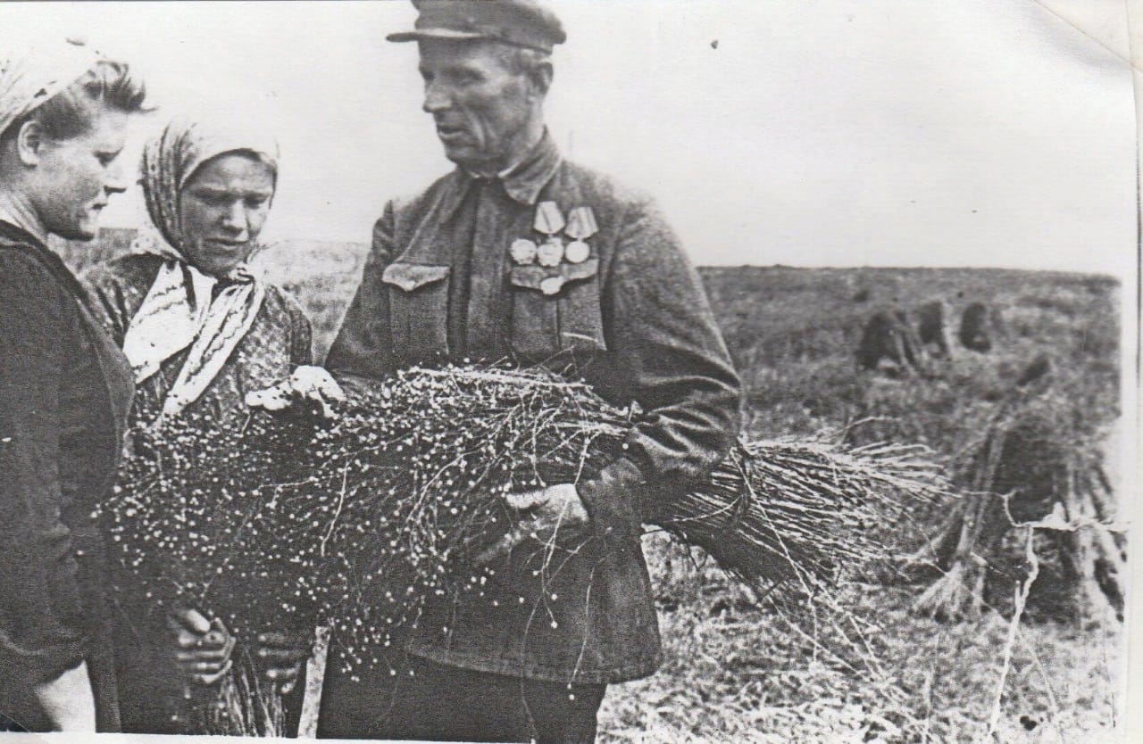 А пахать приходилось на быках. Крестьяне осознавали, что лён нужен для оборонной промышленности, а потому трудились с высокой самоотдачей.